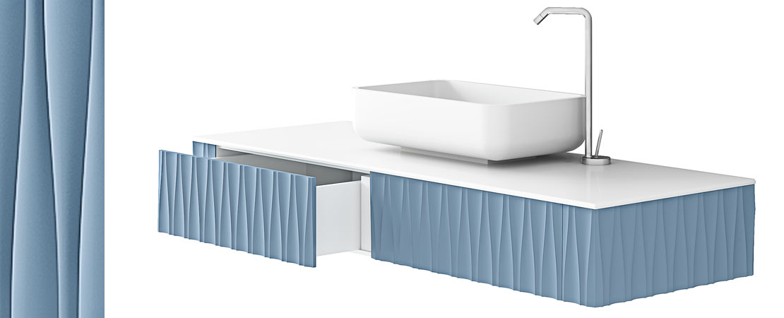Console da bagno 2830 in MDF Carb con cassetti sistema push, con piano in Stonelight