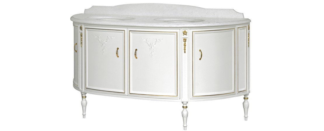 Mobile da bagno doppio lavabo in legno con piano in marmo bianco Carrara – Collezione Louvre