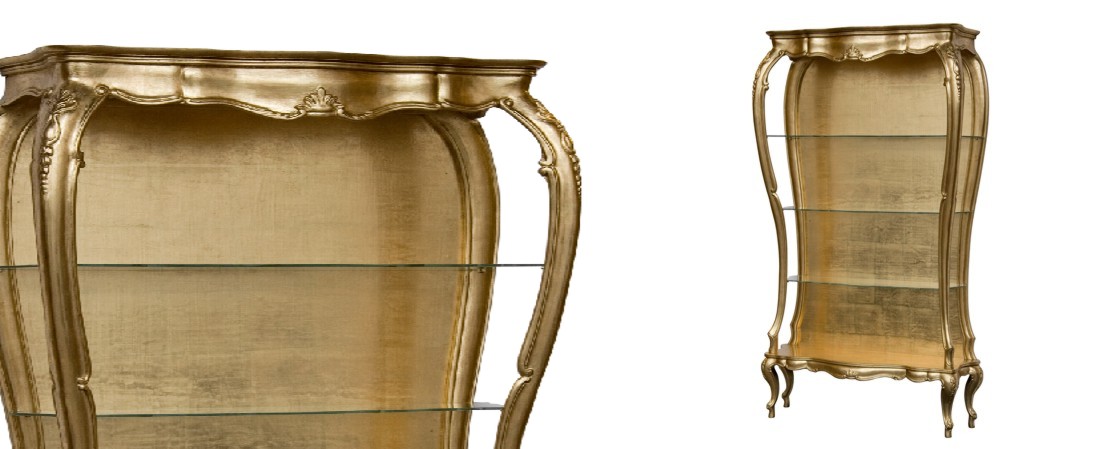 Portaoggetti 8598 in legno intagliato a mano con ripiani in legno o vetro